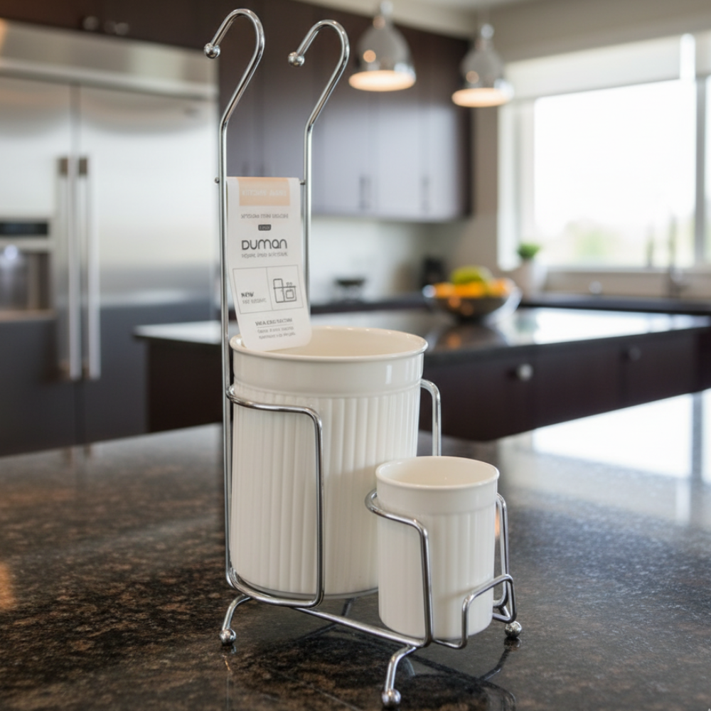 Organize your kitchen with smart versatility using the DualEase Cutlery Organizer by Duman. Designed for both hanging and countertop use, this innovative organizer offers flexibility, durability, and a modern aesthetic — keeping your utensils neatly arranged and within reach. With its sturdy dual-compartment design and quick-drain base, it combines functionality with a refined touch that complements any kitchen space.
